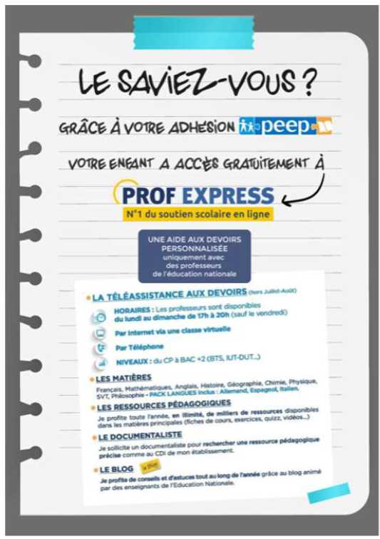 Tous vos enfants doivent avoir Prof Express. Si vous avez un problème de connexion : 02 49 62 03 18